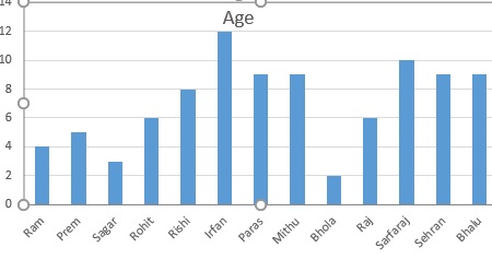 Column चार्ट मुख्य रूप से कटेगोरी प्रकार के डाटा को डिस्प्ले करता है यह किसी कटेगोरी को होरीजन्टल ऐक्सिस पर और उसके वैल्यू को Vertical ऐक्सिस पर डिस्प्ले करता है। उदाहरण के लिए किसी स्कूल मे स्टूडेंट्स और उनके Age के बीच का संबंध जिसे Column Chart मे इस प्रकार दिखाई देता है।