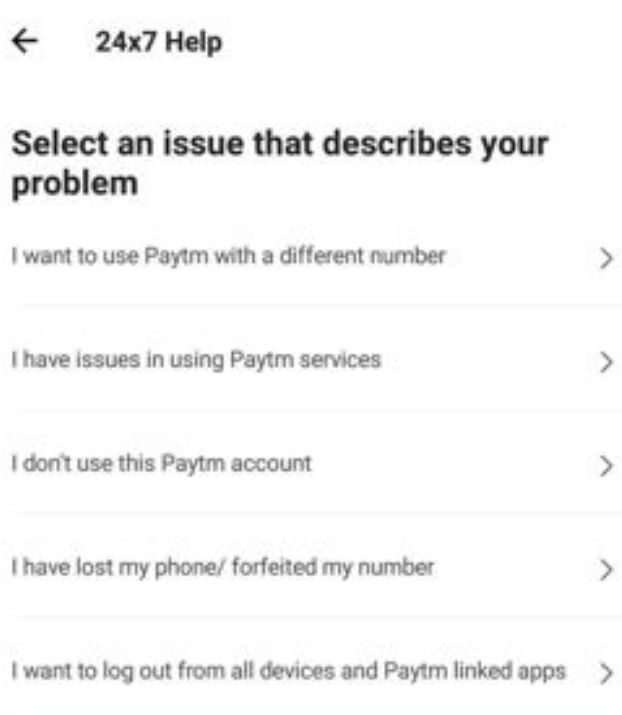 Step 8) इस Step में आपको बताना है की आपको Paytm में क्या Issue आ रहा है आप उसे क्यों बन्द करना चाहते है, Paytm Account को बंद करने के लिए आपको बहुत Option मिलेंगे। अगर आपका फोन खो गया है तो आपको ‘I Lost My Phone/I Want To Block My Account’ पर क्लिक कर देना है। या फिर आपको जो Option अच्छा लगे उस पर क्लिक करना है।